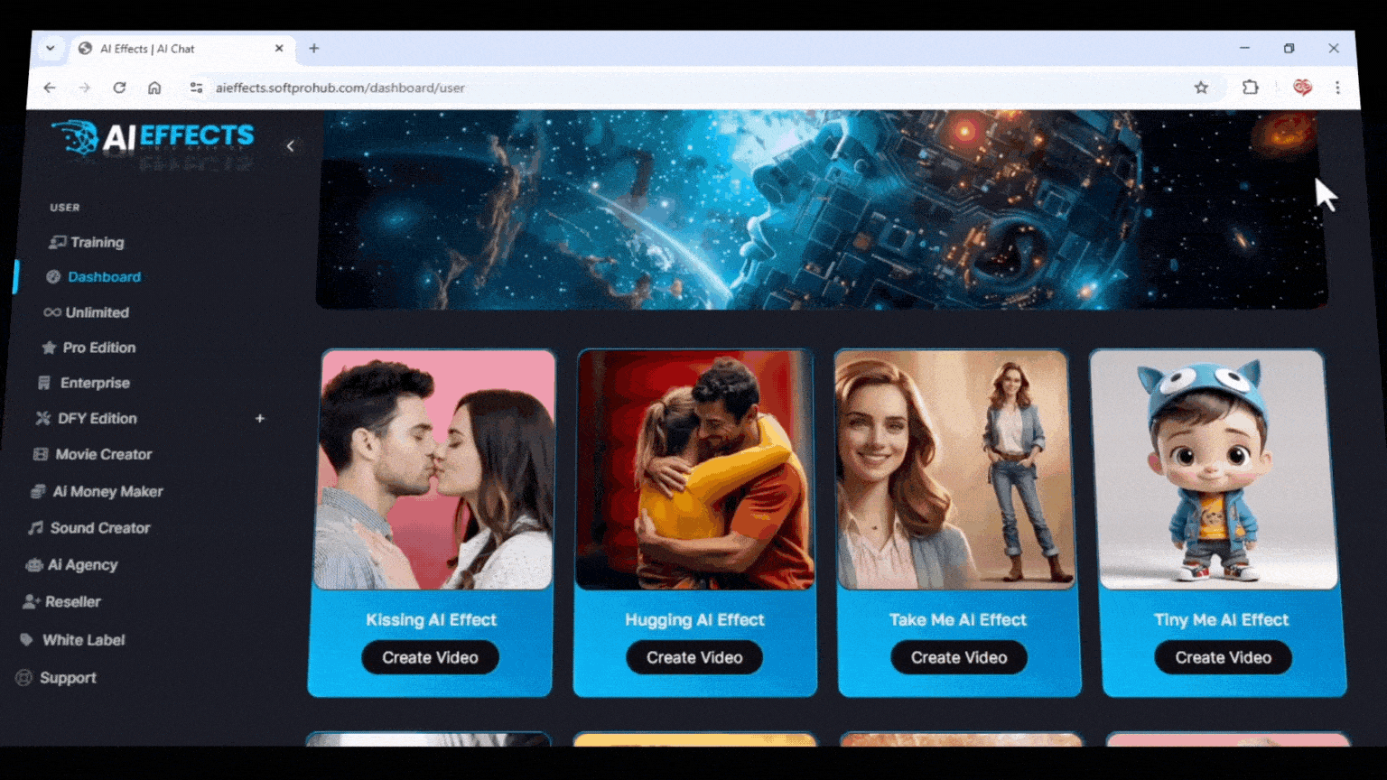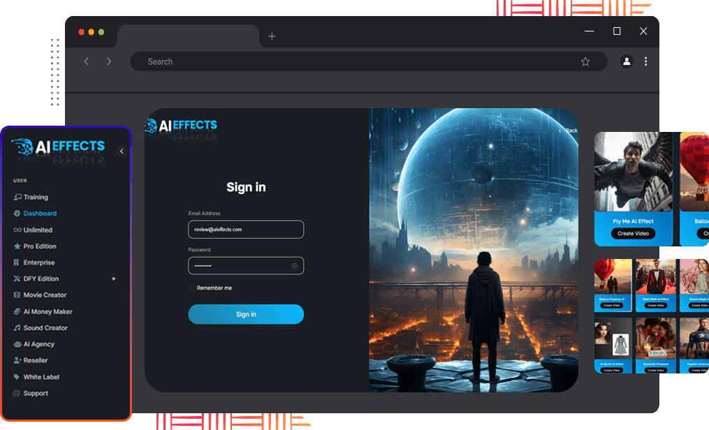 Click on any of the buttons on this page to instantly create your account with AI Effects Video Creator…
